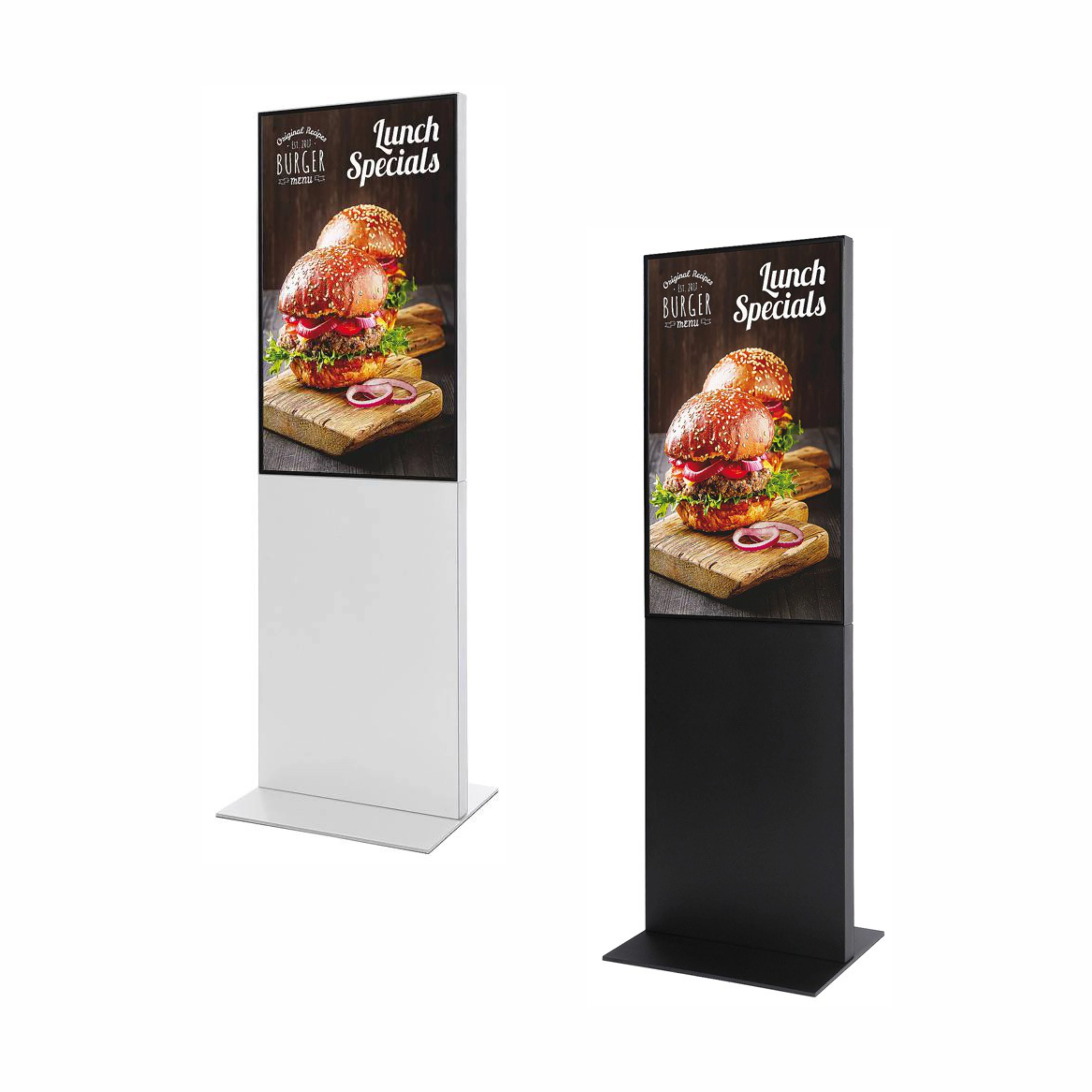 Vékony és dekoratív, álló mágneses, egy- és kétoldalas mágneses világító totem, keret. Elegáns megjelenést biztosít.