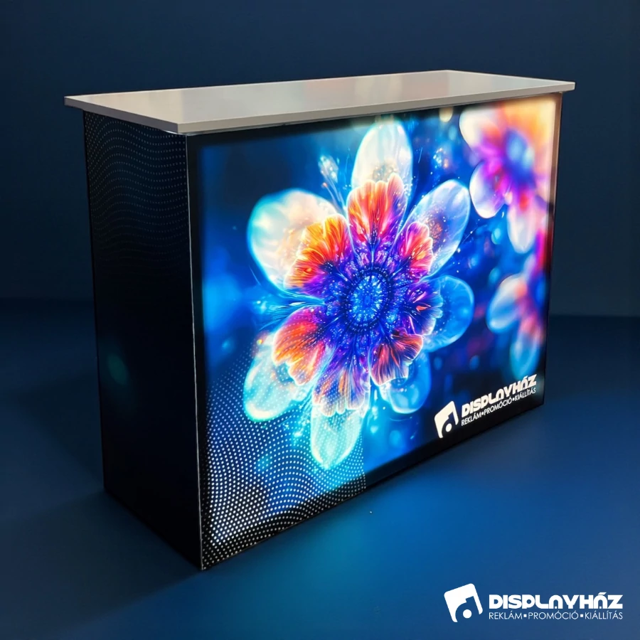- Cserélhető, körbefutó grafika – új kampány = új nyomat, a pult marad