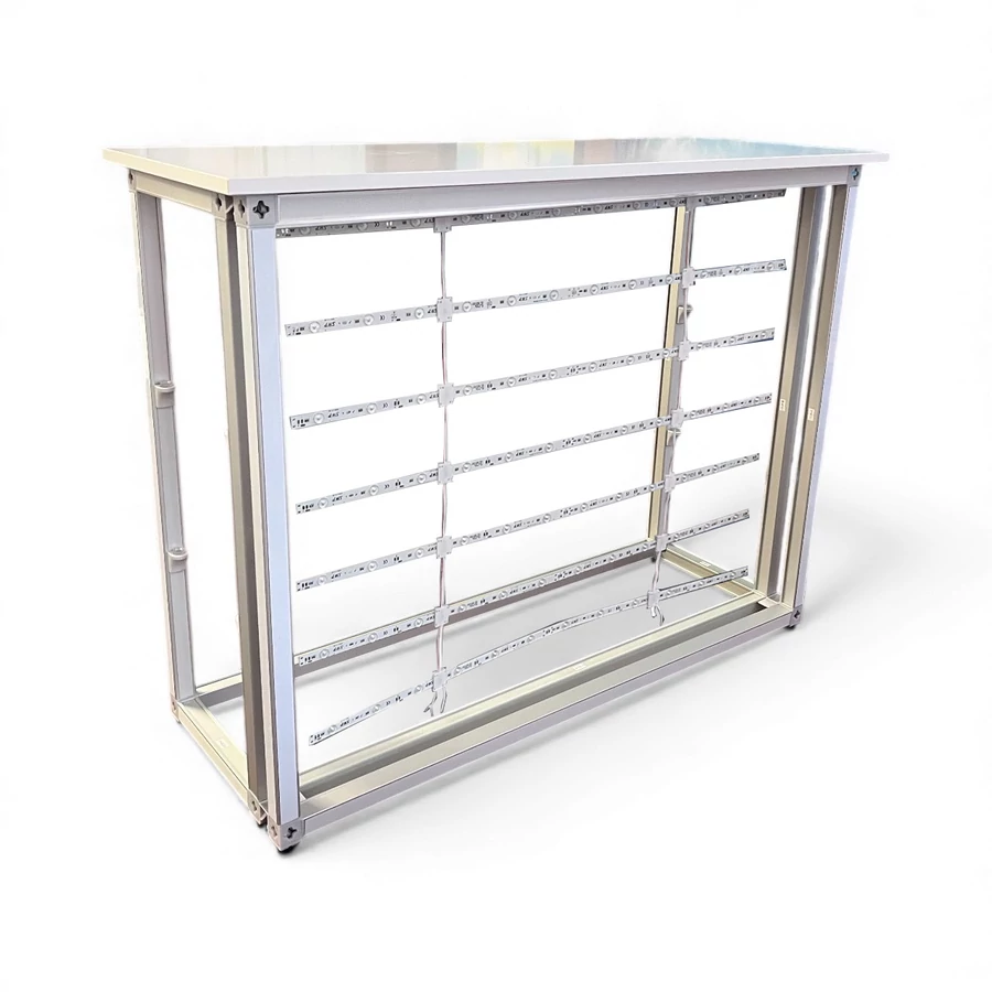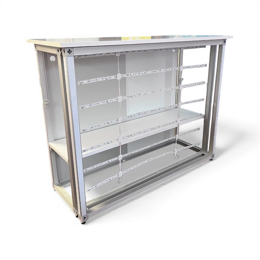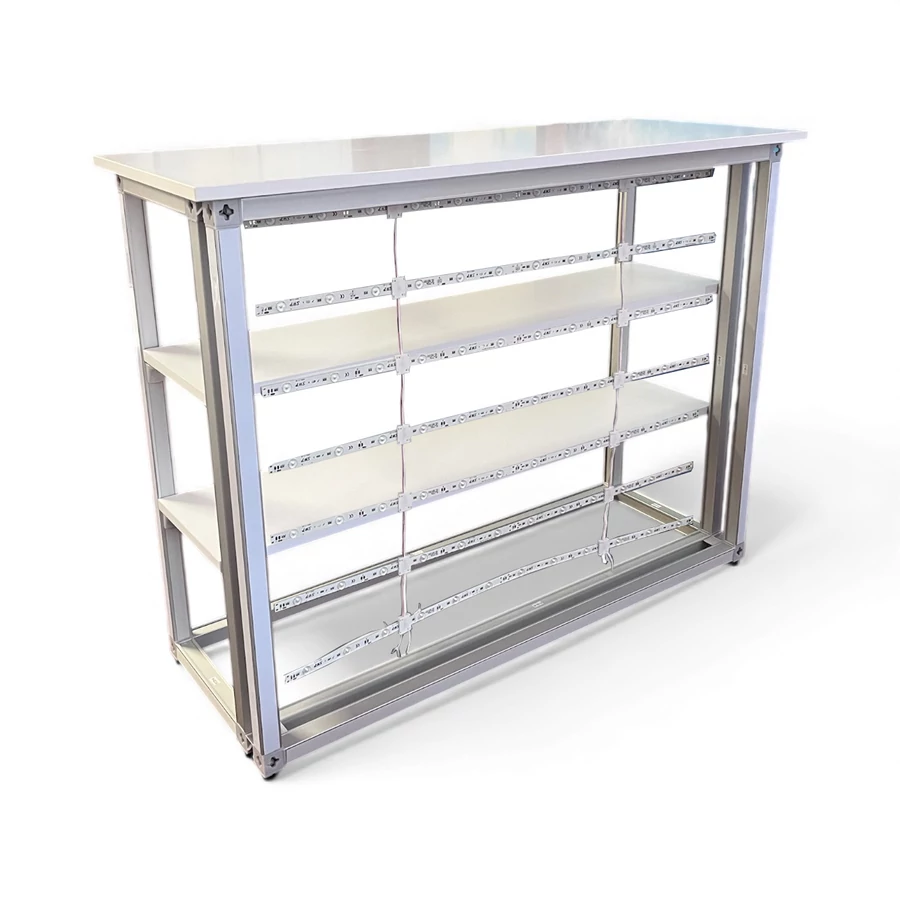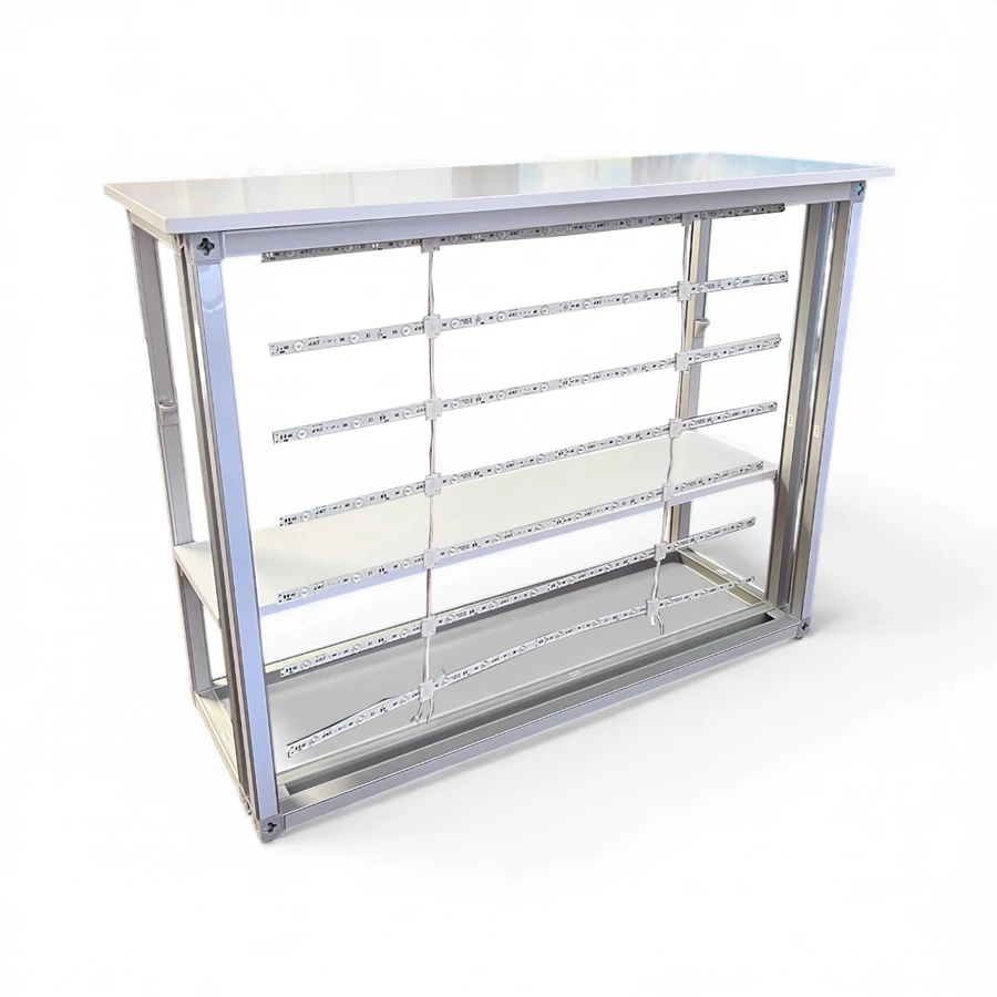 A világító pult több kivitelben is elérhető: nyitott vagy zárható, illetve 1 polcos, 2 polcos vagy polc nélküli verziók közül is választhat, így a felhasználási igényekhez tökéletesen igazítható.